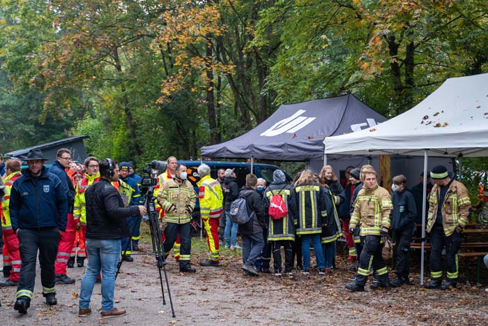 Die Einsätze liefen den ganzen Tag über in verschiedenen Konstellationen ab. Während einsatzfreien Zeiten oder in der Mittagspause (Leberkäs und Kartoffelsalat) konnten sich die Teilnehmer untereinander austauschen, sich über verschiedene Fahrzeugkonzepte informieren oder auch die Möglichkeit von Unterwasserdrohnen in Augenschein nehmen. Hier gab es einen eigenen Einsatzabschnitt „See“, wo zwei verschieden Tauchroboter ihre Einsätze abspulten.