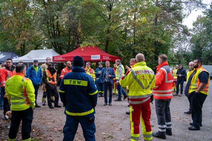 Nach Fahrzeugaufstellung erfolgte die Begrüßung der Teilnehmer durch den Vorstand des RETTUNGSNETZWERK e.V. und dem 1. Bürgermeister Christoph Böck, Stadt Unterschleißheim. Hierbei wurden auch die einzelnen Stationen (Start- u. Landeplatz und Unterwasserdrohnen-Station) der Übung vorgestellt. Im Anschluß daran wurde dann auch die Butterbrezen ausgegeben.