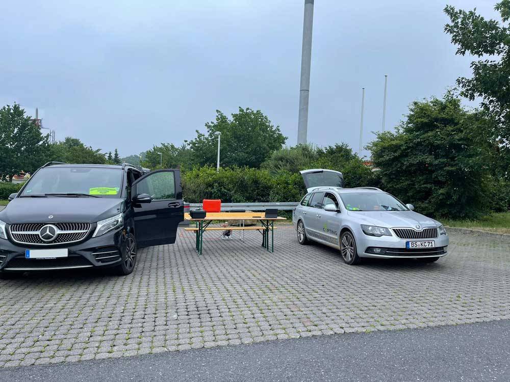 Nach einigen Staus sind wir um 20:30 Uhr in Bad Neuenahr angekommen und haben dort Kontakt zur örtlichen EInsatzleitung aufgenommen. Was wir auf dem Weg dorthin gesehen haben, läßt sich nicht in Worte fassen, aber wir verzichten auch explizit darauf Bilder hochzuladen. Durch die Einsatzleitung erfuhren wir auch, dass es noch verschiedene Gebiete gibt, die noch nicht abgesucht werden konnten und Drohnen hier eine gute Hilfe wären. Der Leiter vor Ort hat mit dem Lagezentrum RLP noch einmal abgeklärt, dass unsere Einsatzbereitschaft gelistet ist. Um nicht weiter im Katastrophengebiet im Weg zu sein, haben wir dann unseren Standort 20 km außerhalb bei der Shell-Tankstelle, B262 Gewerbepark, Mendig eingerichtet. Hier hat uns der Betreiber der Tankstelle einen Bereich des Parkplatzes und auch auch die sanitären Anlagen, inkl. einer blitzblanken Dusche zur Verfügung gestellt. Vielen Dank dafür.