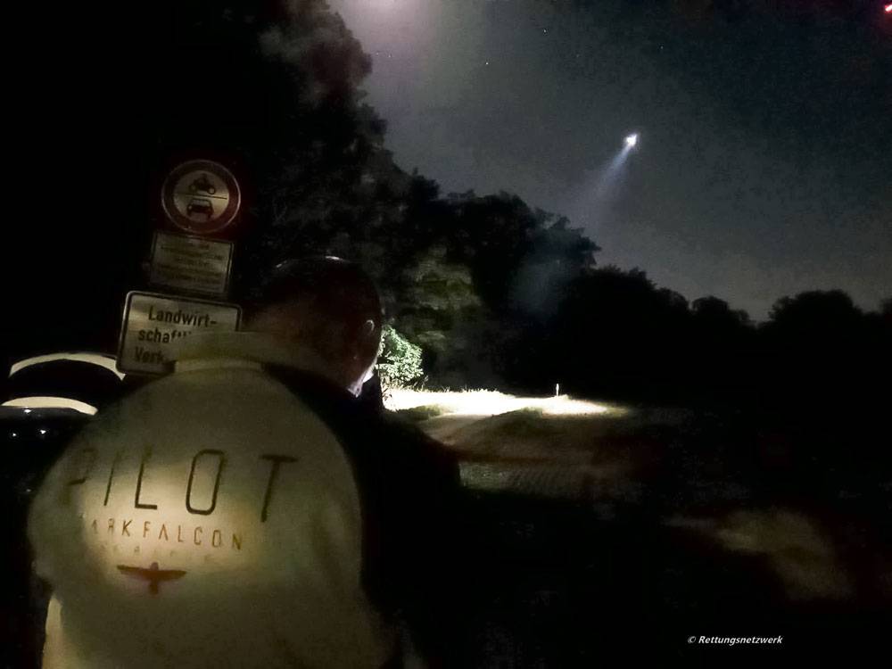 Tanja Axmann und ihr Hundesicherungsteam begaben sich sofort an die Unfallstelle und kontaktierten uns auf der Anfahrt, da hier bereits klar war, dass es sich um ein größeres Gebiet handelte, in welchem der Hund vermutet wurde. Unmittelbar begannen wir uns für das Einsatzszenario zu richten und zogen zur Unterstützung noch Roman Rössel von der Drohnensuche Karlsruhe hinzu. Nachdem sich Tanja Axmann vor Ort ein Bild der Situation gemacht hatte, gab es das GO für uns die Einsatzstelle anzufahren, da der Einsatz einer Drohne mit Wärmebildkamera die Suche wesentlich erleichtern würde. Auf der Anfahrt wurde über Frau Axmann direkt ein Kontakt zur anwesenden Polizei hergestellt um die Aufstiegsgenehmigung für einen Nachtflug zu erhalten, welche glücklicherweise auch recht schnell erteilt wurde. Einzige Einschränkung hier war ein absolutes Überflugverbot von bewohntem Gebiet, welches aber nicht auf die geplanten Gebiete Auswirkungen hatte.